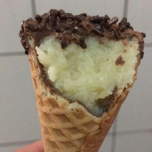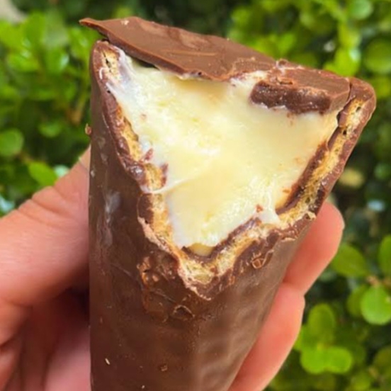 CASCA DE SORVETE GRANDE BANHADA NO CHOCOLATE AO LEITE COM RECHEIO DE LEITE NINHO