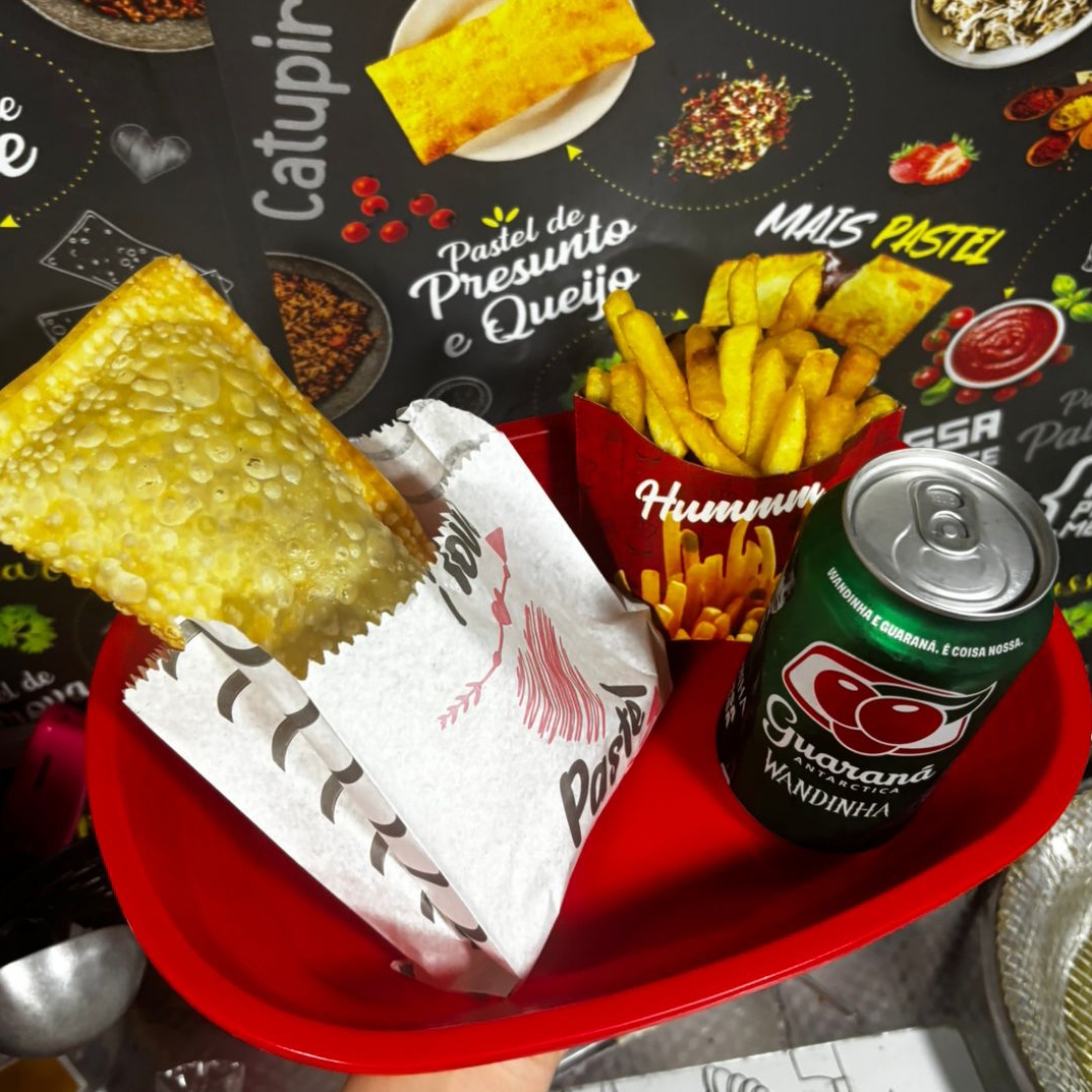 1 PASTEL DE CARNE E QUEIJO/1 PORÇÃO PEQUENA DE BATATA FRITA/1GUARANÁ