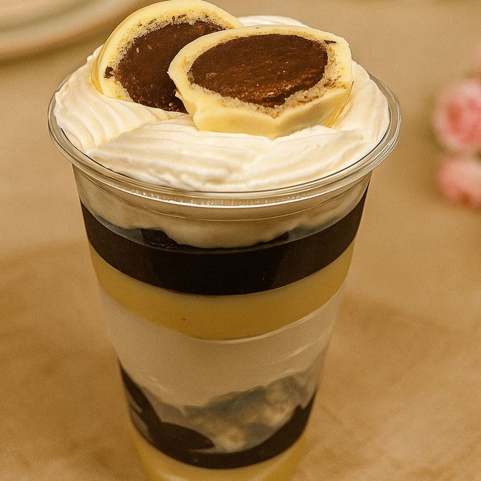 Um verdadeiro sonho para os fãs de chocolate! Camadas generosas de mousse de chocolate branco, pedaços de brownie, brigadeiro, brigadeiro sabor Kinder, creme de avelã e mousse de chocolate. Finalizado com mousse e um toque de Kinder Bueno. Uma explosão de sabor a cada colherada! OBS= Decorativo por cima sera de acordo com disponibilidade em estoque, opções são: mousse de chocolate ou mousse de chocolate branco >>>> Embalagem Copo tamanho 300ml.