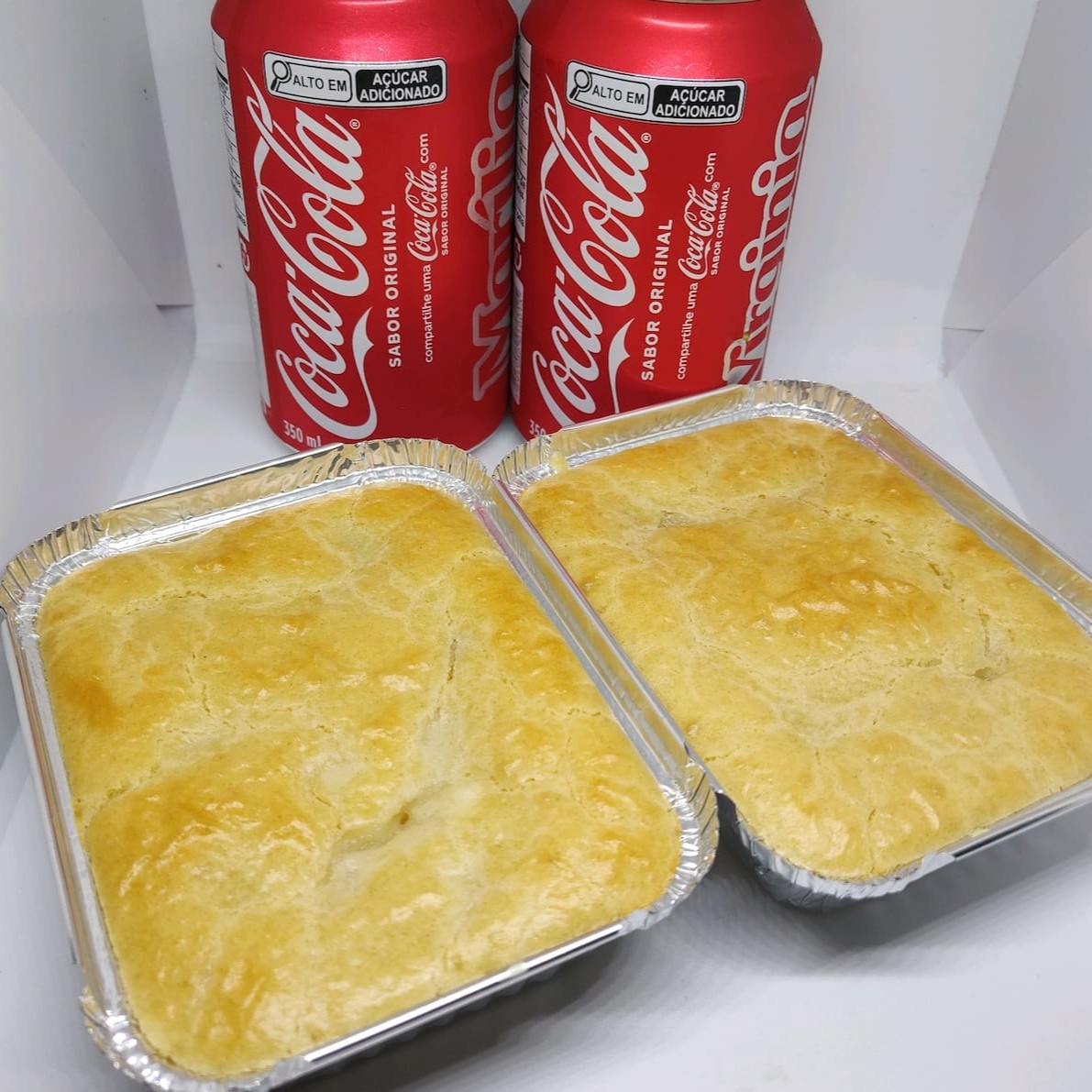 Combo Casal - Duas tortas generosas de frango com Catupiry, com massa leve e recheio cremoso, assadas até ficarem douradinhas. Acompanhadas 2 latas de refrigerante 220ml (coca-cola) ou 269ml (Guaraná Antártica), enviamos de acordo com estoque, para completar a refeição com muito sabor e praticidade. Ideal para dividir! Obs: **Serve 1 Pessoa cada torta** Embalagem De 220ml>> Peso 165g Aprox cada.