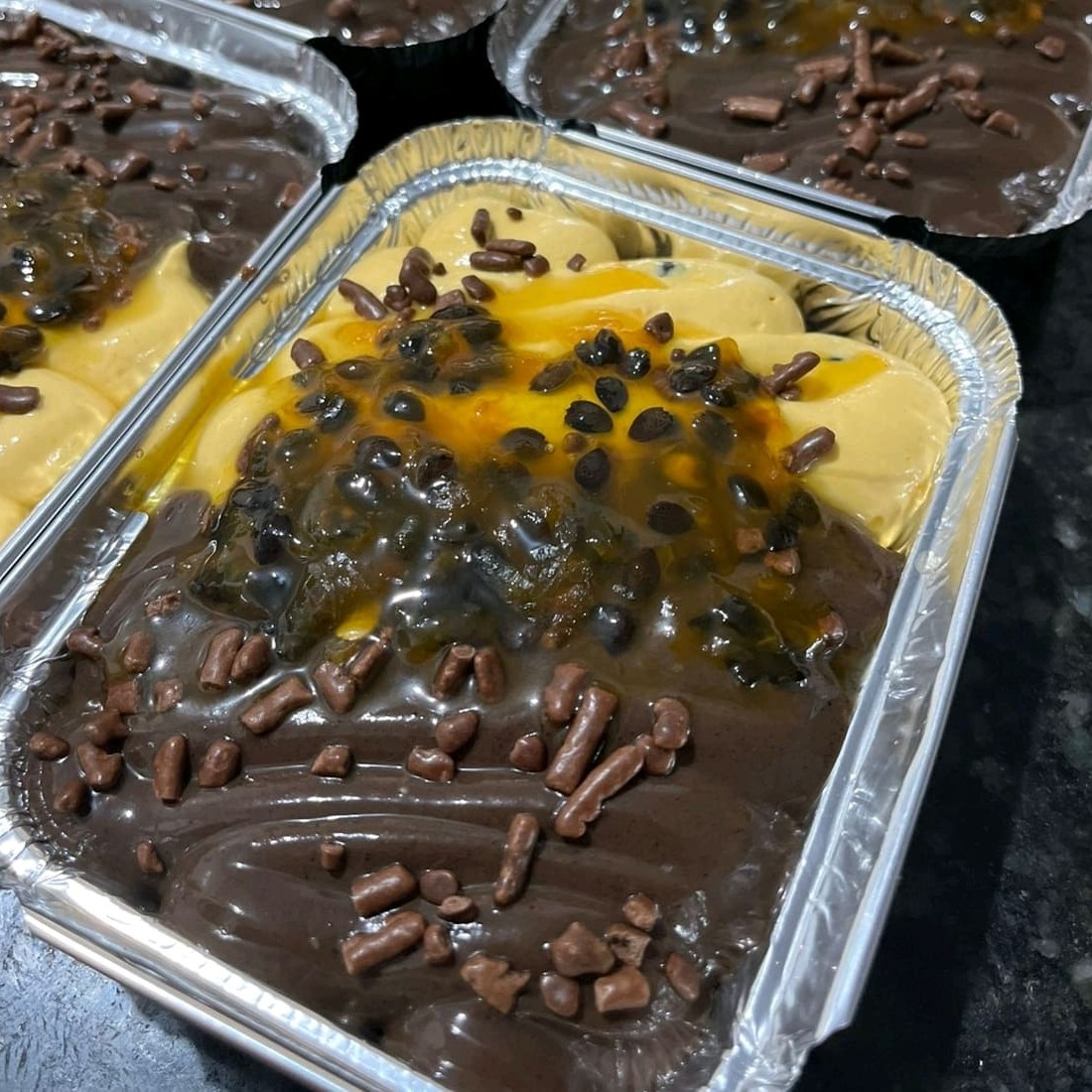 Delicie-se com uma explosão de sabores! Nosso bolo gelado é feito com massa de chocolate molhadinha, recheado com uma combinação irresistível de mousse de maracujá e brigadeiro cremoso. Para finalizar, uma generosa camada de geleia artesanal de maracujá, trazendo o equilíbrio perfeito entre o doce e o azedinho. Servido em embalagem prática e pronto para saborear bem geladinho! >>> Serve 1 Pessoa (1 Unid) Peso Aprox. 165g!