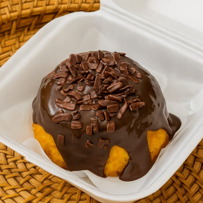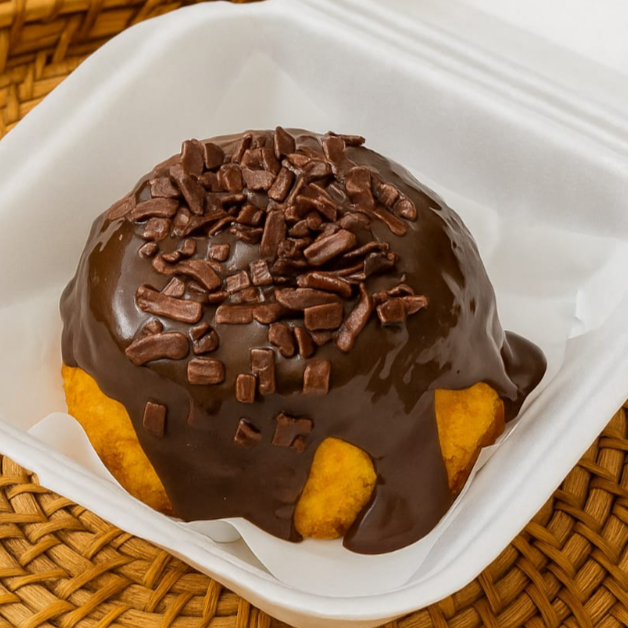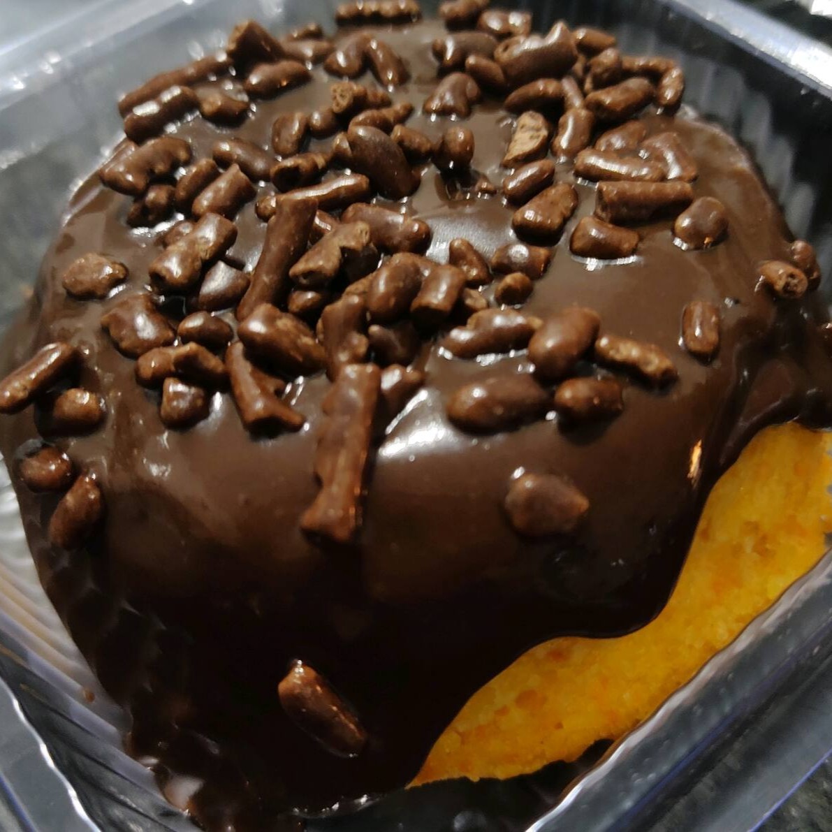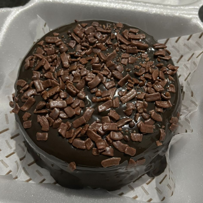 Massa de chocolate fofinha, recheado e coberto com brigadeiro cremoso e quentinho, finalizado com granulado. Uma explosão de sabor para os amantes em chocolate! Obs: Tamanho 9cm, Serve 1 Pessoa!