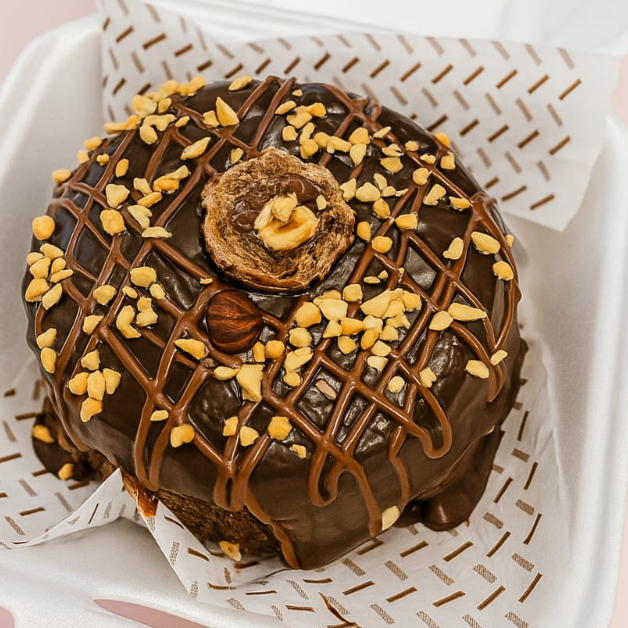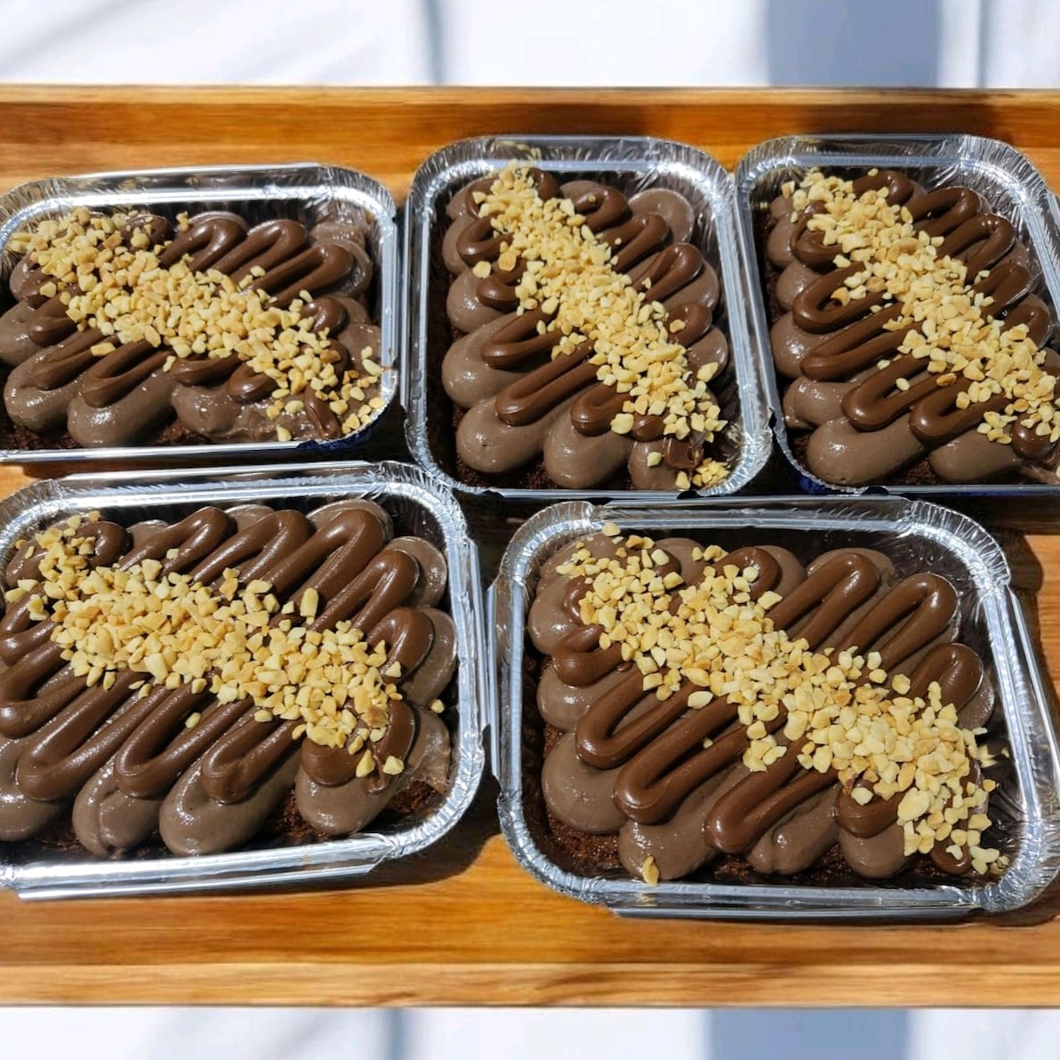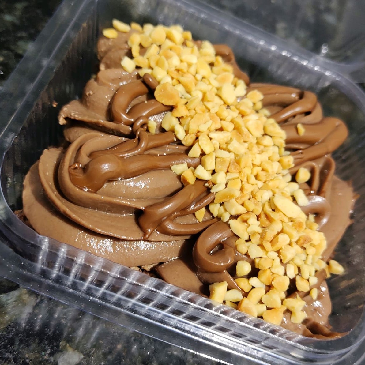 Brownie macio coberto com brigadeiro de chocolate cremoso, fios de creme de avelã e finalizado com amendoim crocante. Uma sobremesa irresistível para os amantes de chocolate!
