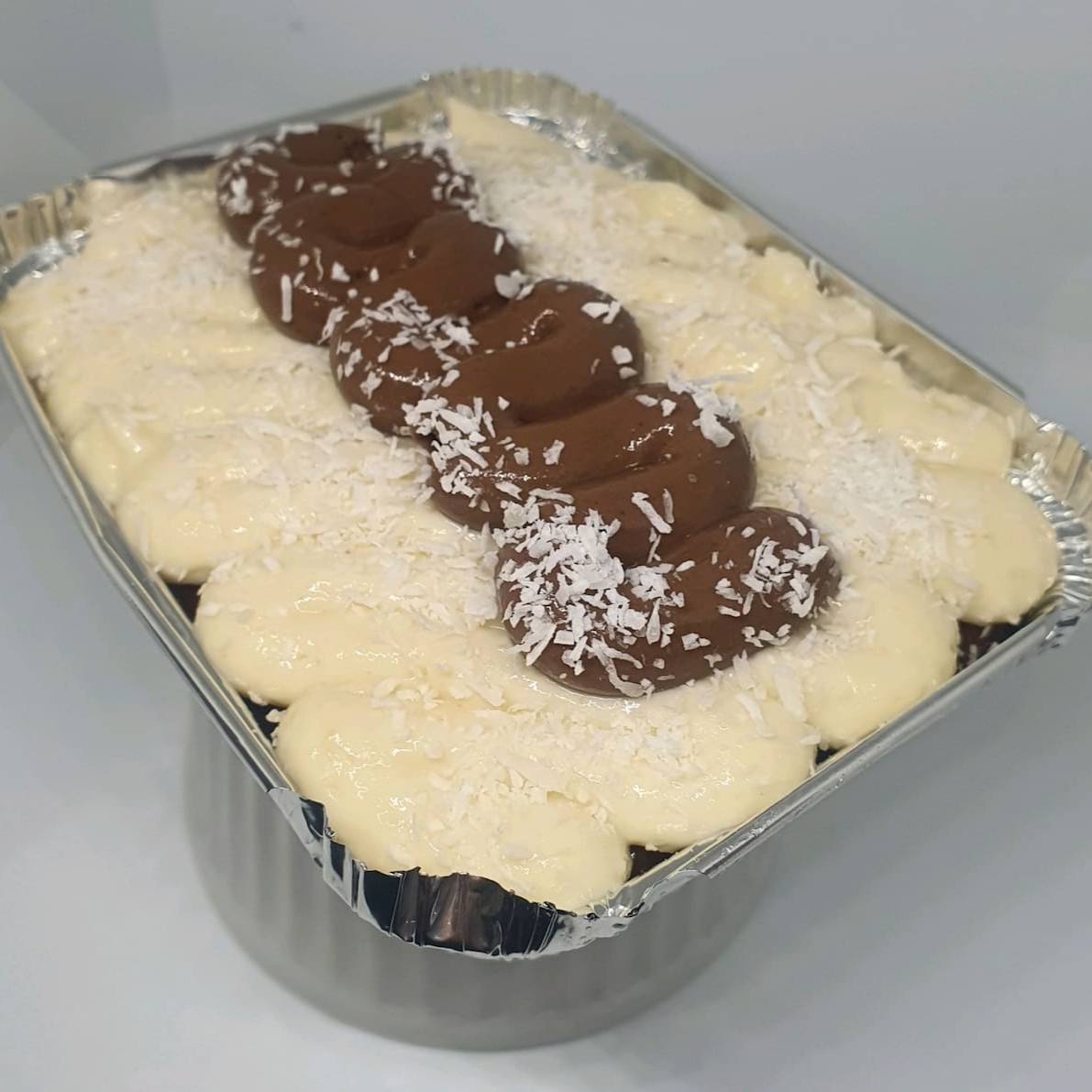 Se você ama a combinação de chocolate e coco, prepare-se para se apaixonar! Nosso Bolo Gelado Prestígio é feito com massa de chocolate super molhadinha, recheado com um irresistível brigadeiro de coco e finalizado com brigadeiro cremoso e um toque de coco ralado. Uma explosão de sabor que derrete na boca! >>>> Serve 1 Pessoa (1unid). Peso Aprox. 180g!