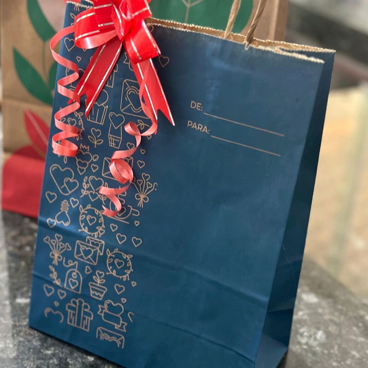 Sacola Kraft Presente Azul P (26x20x9,5)