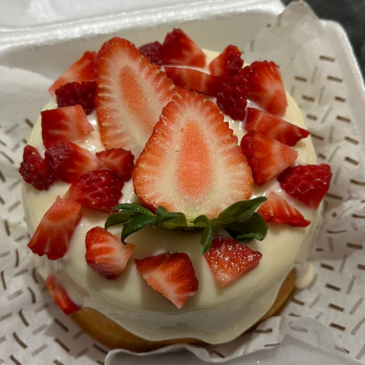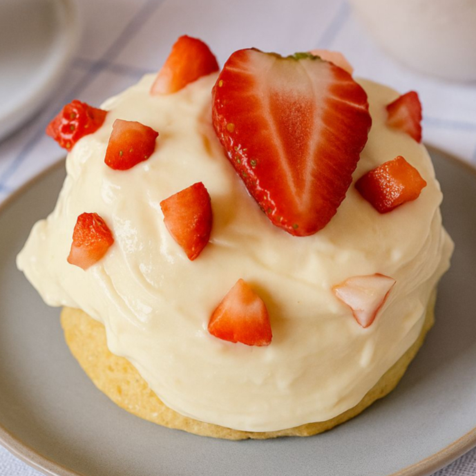 Massa baunilha fofinha, Recheio de geleia de morango, calda de brigadeiro branco e morango decorativo. Uma combinação perfeita de sabores! >>>> Obs: Tamanho 9cm, Serve 1 Pessoa!