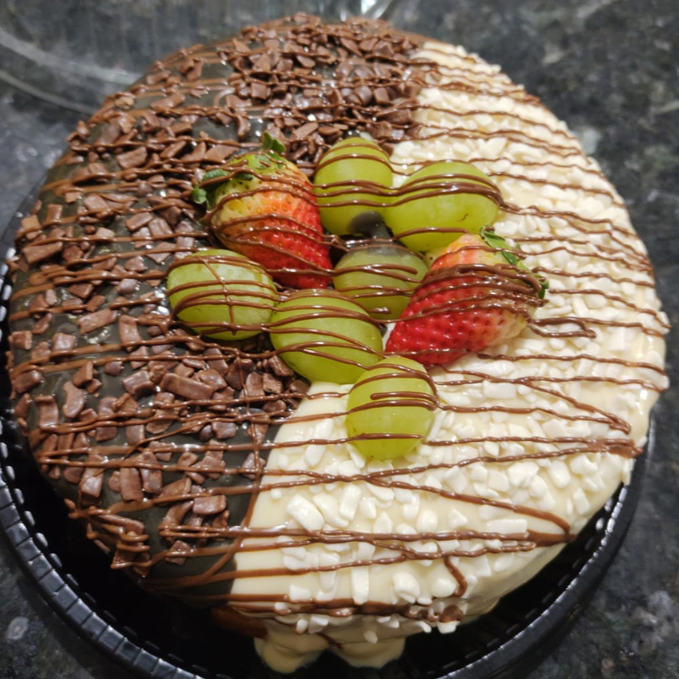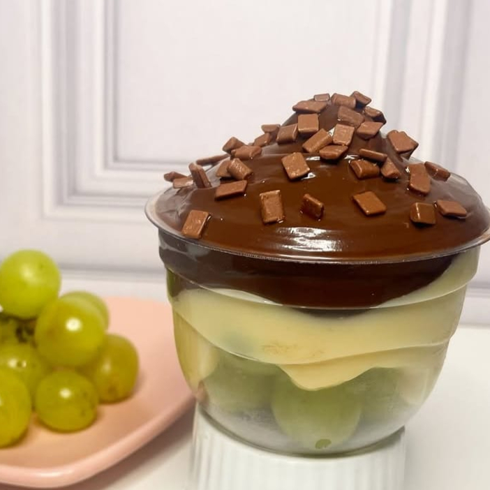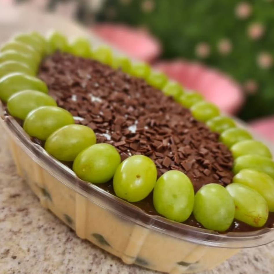 UMA COMBINAÇÃO IRRESISTÍVEL DE UVAS VERDES FRESQUINHAS, CREME DE BRIGADEIRO BRANCO SUPER CREMOSO E UMA COBERTURA GENEROSA DE CHOCOLATE. UMA SOBREMESA PERFEITA PARA ADOÇAR QUALQUER MOMENTO! OBS: >>> TAMANHO P - PESO 550G APROX.