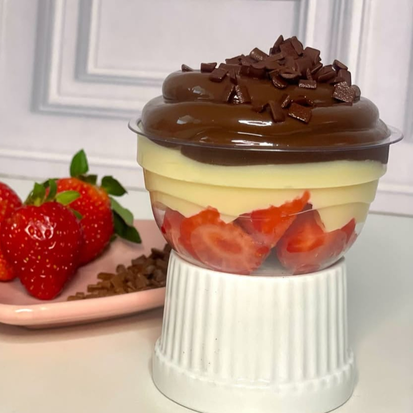 FEITO COM MORANGOS FRESCOS, CREME DE BRIGADEIRO BRANCO OU CREME DE NINHO SUPER CREMOSO E FINALIZADO COM UMA COBERTURA DE CHOCOLATE IRRESISTÍVEL. A SOBREMESA PERFEITA PARA ENCANTAR NA MESA E ADOÇAR QUALQUER MOMENTO! OBS: >>> TAMANHO P - PESO 550G APROX.