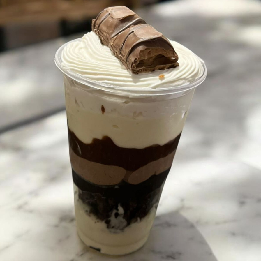 A combinação perfeita para os amantes de Oreo! Camadas generosas de creme de Oreo, brigadeiro cremoso, brigadeiro branco, chantilly e pedaços do irresistível biscoito Oreo. Cremoso, crocante e simplesmente viciante! >>> Embalagem 300ml, Serve 1 Pessoa.