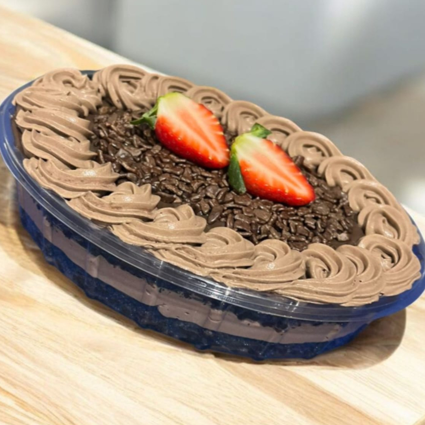 Massa de massa de chocolate ou baunilha (de acordo com disponibilidade do dia em estoque) fofinha, recheio a escolha do cliente. Perfeito para acompanhar um café ou chá da tarde! Tamanho 18cm. - >>> OBS: NÃO VAI FIOS DE CREME DE AVELÃ.