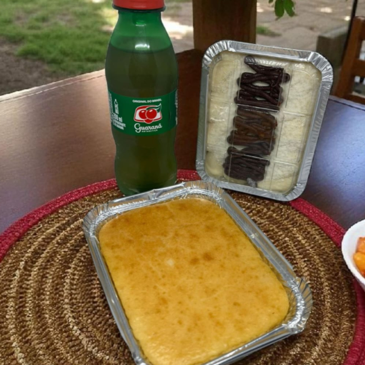 1 Torta de Frango com Catupiry + Bolo Gelado (Escolha o sabor) + Refrigerante guaraná ou coca-cola 200ml pet ou Guaraná Mineiro Lata 269ml. Obs: **Serve 1 Pessoa** Embalagem De 220ml>> Peso 165g Aprox.