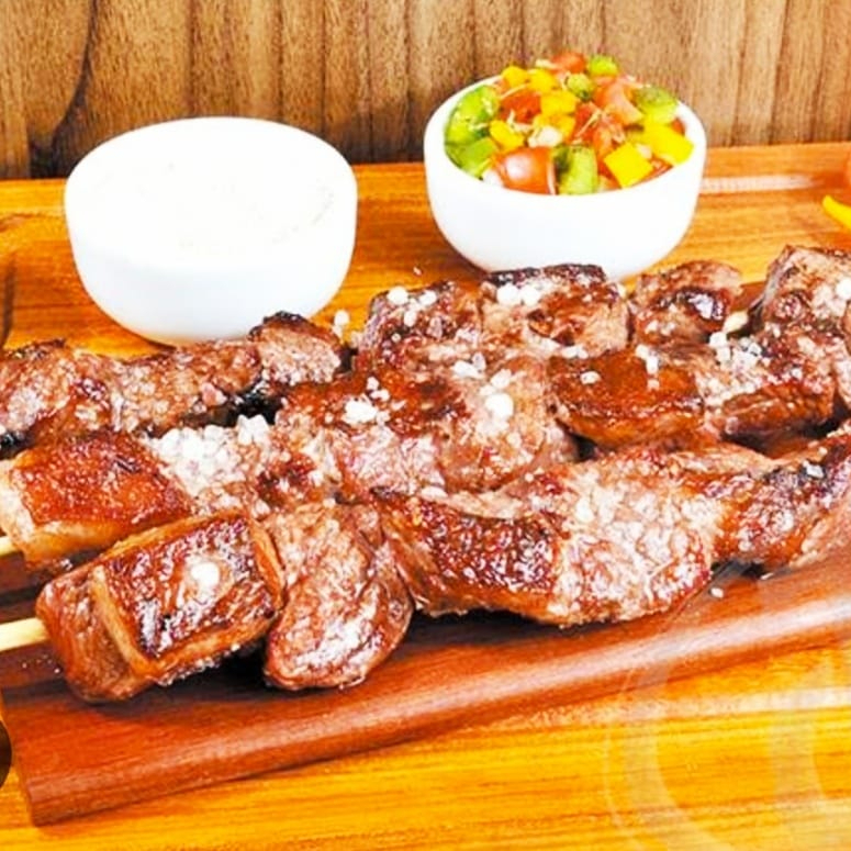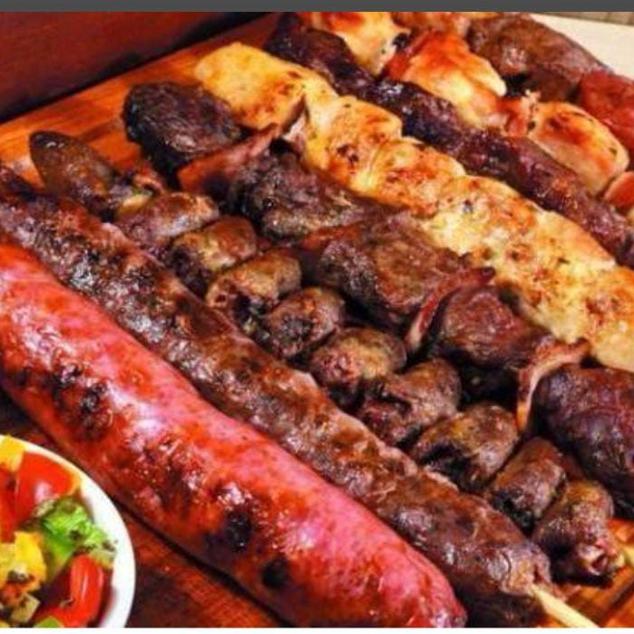Escolha seu espeto preferido! Acompanhamentos: Arroz- Feijão tropeiro-Mandioca-.