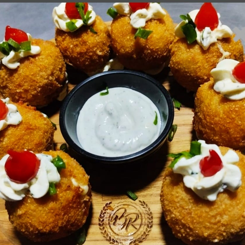 8 unidades de filé de frango recheados com queijo provolone , com gremolata de cream cheese com um toque de limão siciliano+ um molho artesanal á escolha