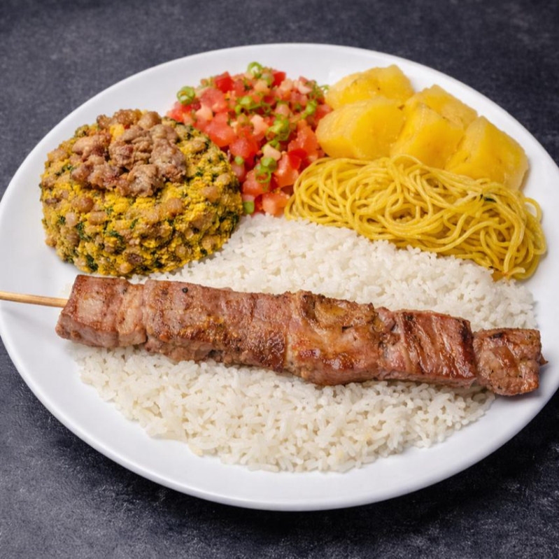 Nossa Janta acompanha arroz, feijão tropeiro, macarrão, mandioca e salada
