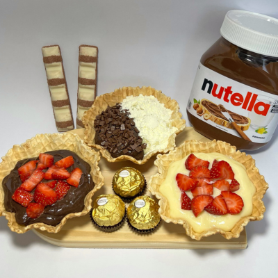Uma explosão de sabor personalizada por você! 200g. Nossa cestinha crocante de wafer é recheada com um brigadeiro artesanal à sua escolha (feito com chocolate nobre), uma fruta fresquinha e um topping irresistível por cima. Perfeita para presentear, surpreender ou simplesmente se mimar com uma sobremesa diferente, criativa e feita com ingredientes de qualidade! --------------- Tags --------------- ces