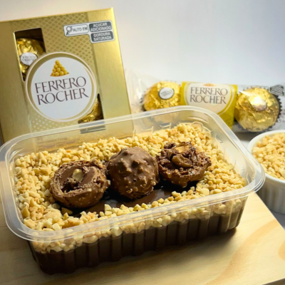 Um verdadeiro luxo em forma de sobremesa! Brigadeiro de chocolate nobre preto, feito artesanalmente com ingredientes premium e uma cremosidade incomparável, finalizado com pedaços de Ferrero Rocher e amendoim crocante. A união perfeita! 250g. ️️ Uma sobremesa gourmet que vai transformar qualquer momento em uma experiência inesquecível. --------------- Tags --------------- brigadeiro , ferrero