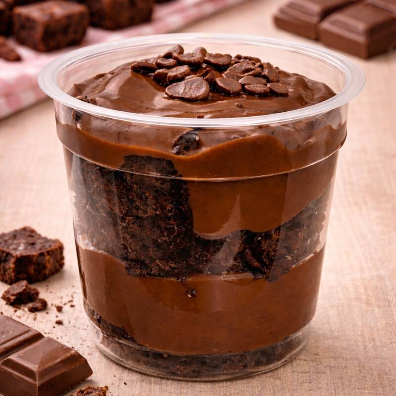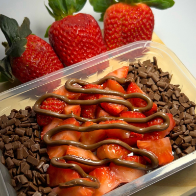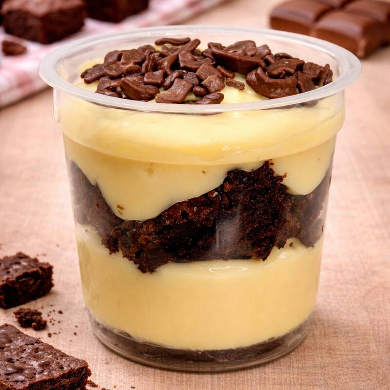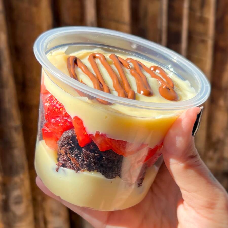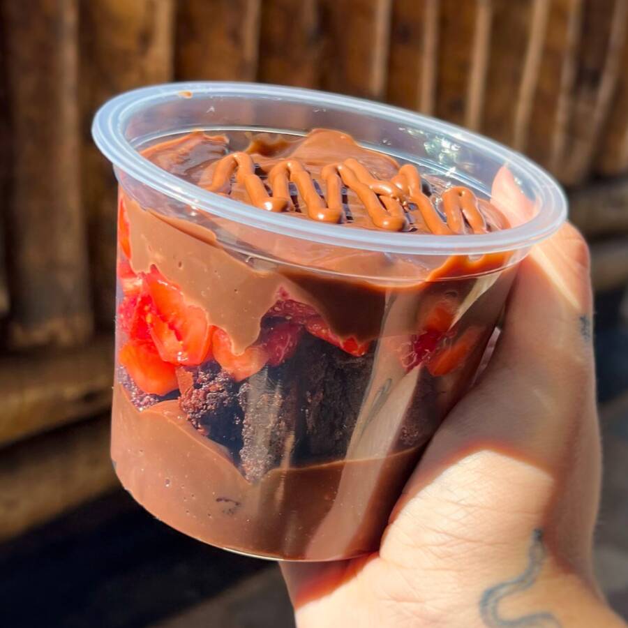 Uma sobremesa em camadas feita pra conquistar. Começa com uma base de brownie artesanal super chocolatudo, seguida por morangos frescos picados, depois vem uma camada cremosa de brigadeiro feito com chocolate ao leite nobre e, por cima, uma cobertura de Nutella. Rica, intensa e feita com ingredientes de verdade, essa tentação é perfeita pra quem ama um doce completo e inesquecível. 300g
