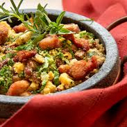 feijao tropeiro, torresmo, mandioca, vinagrete