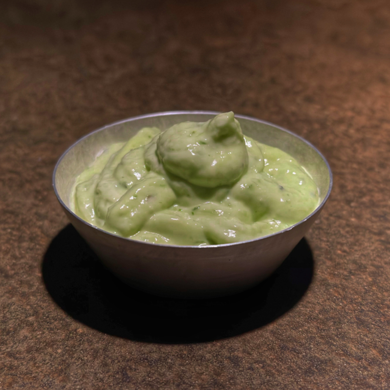 Feito de polpa e da fruta, batido junto às folhas de hortelã. Bem encorpado e gelado. *Imagem ilustrativa. Enviamos em embalagem descartável.