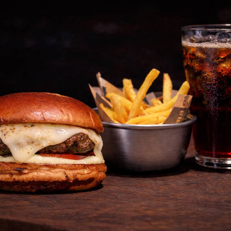 1 Hambúrguer Bravíssimo: Pão especial selado na manteiga, Burger bovino 160g, Mussarela derretida no fogo forte, maionese defumada de ervas [feita na casa], tomate. 1 Batata Frita P (100g): crocantes, macias e quentinhas (acompanha ketchup), 1 Coca-cola (350ml) geladinha.