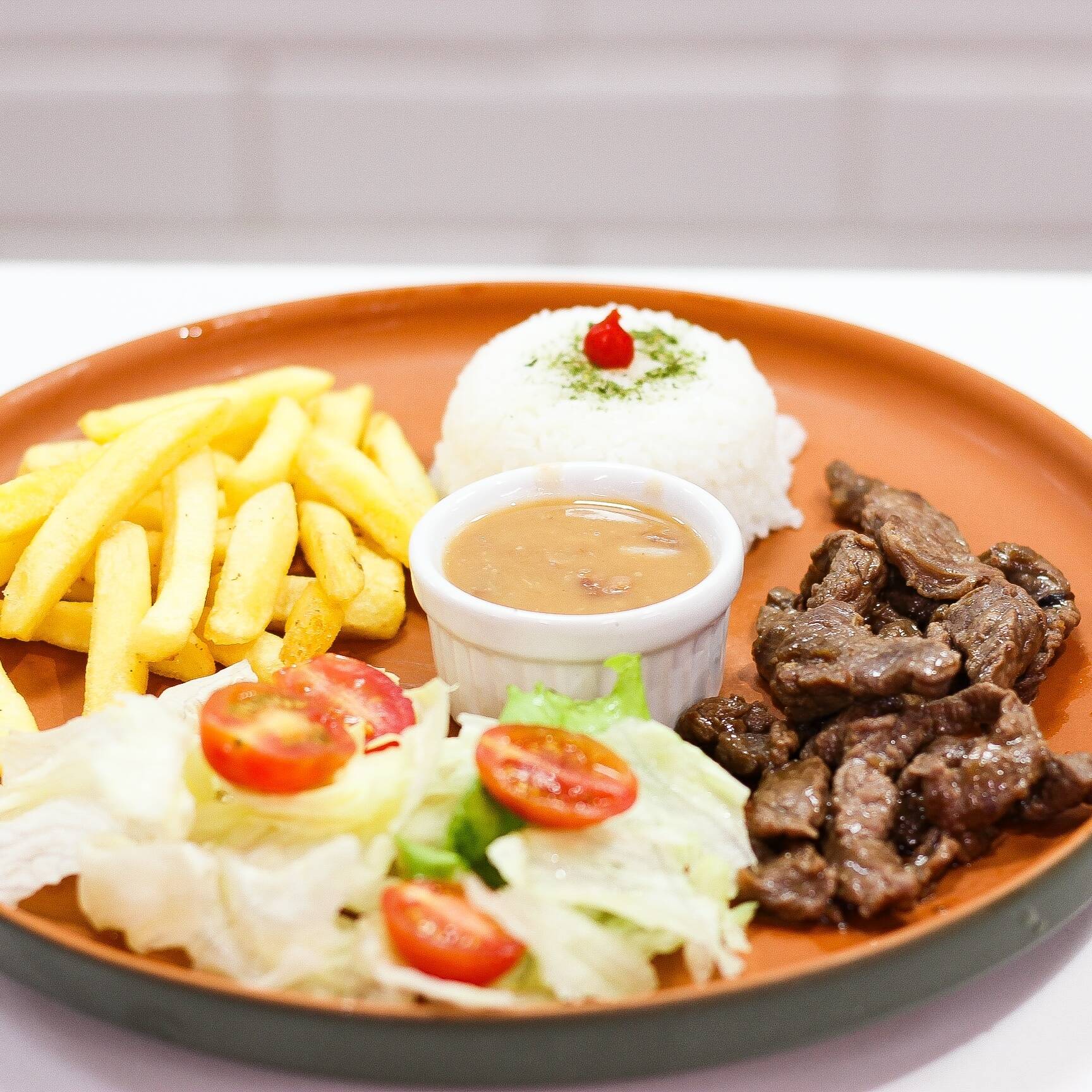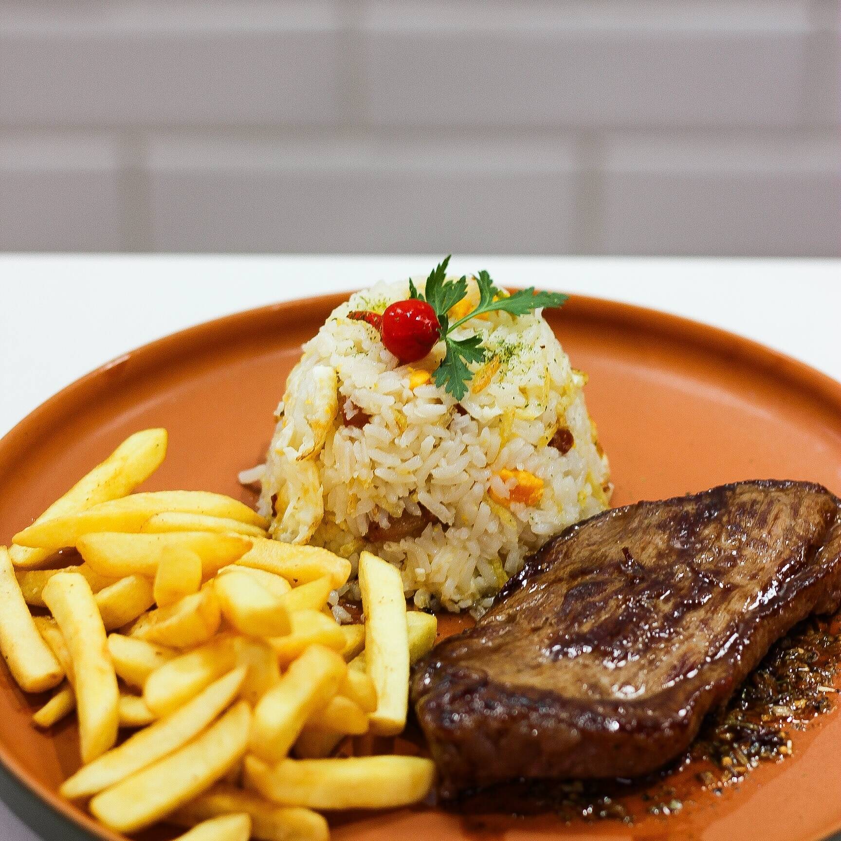 ARROZ BIRO BIRO ,FRITAS E SUCULENTA PICANHA 150G