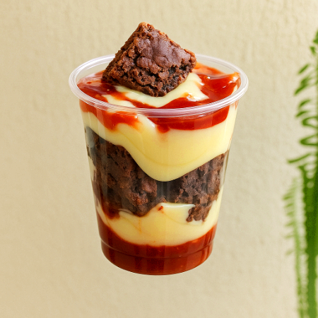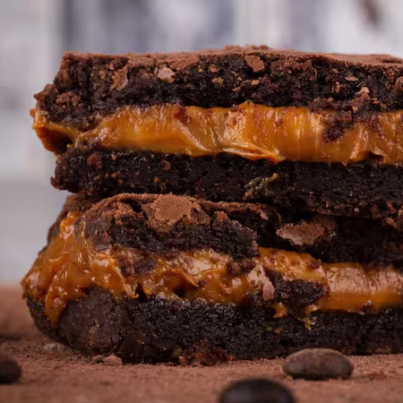 Uma combinação perfeita de doce e salgado! A massa macia do brownie se junta à cremosa calda de caramelo salgado para criar uma experiência sensorial inesquecível.