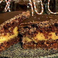Brigadeiro de maracujá, pedaços de brownie, mais brigadeiro meio amargo e finalizado com brownie e granulé meio amargo. Uma combinação perfeita para quem gosta de doce na medida. Experimente!