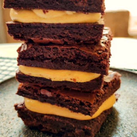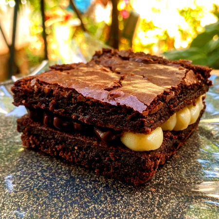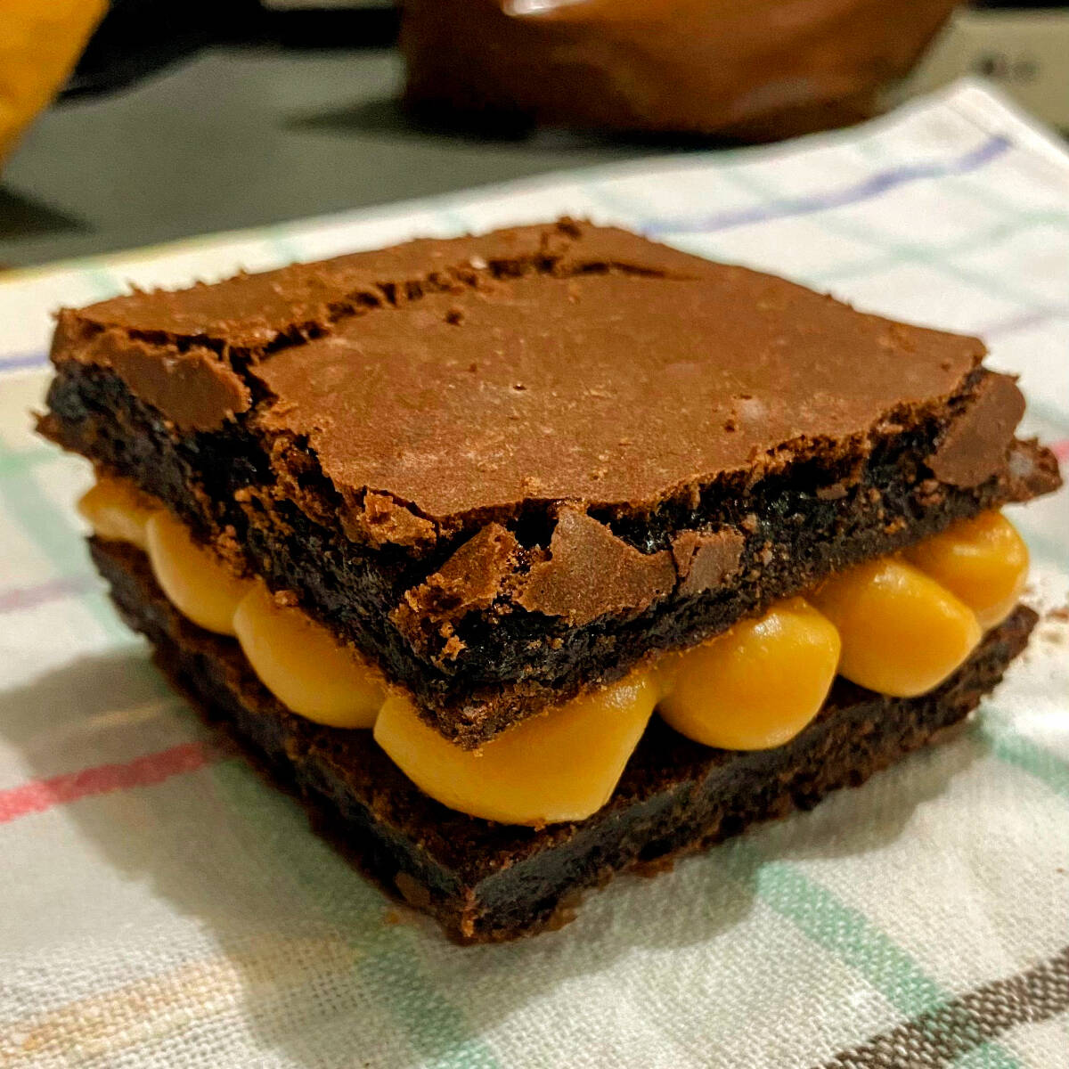 Delicie-se com nosso irresistível Brownie Recheado com Doce de Leite. Um brownie macio e saboroso, repleto de um generoso recheio de doce de leite cremoso. A combinação perfeita para quem ama sobremesas intensamente doces.