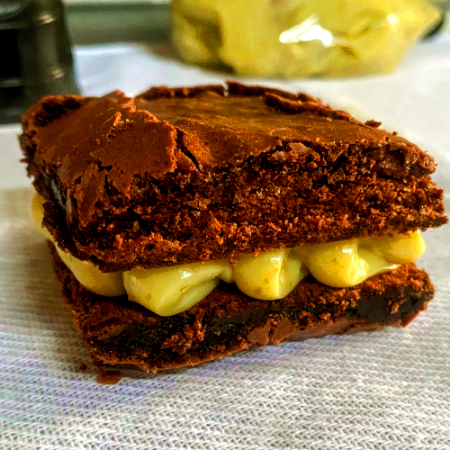 Delicie-se com nosso irresistível Brownie Recheado com Pistache Um brownie macio e saboroso, repleto de um generoso recheio cremoso e pedacinhos de pistache crocante. A combinação perfeita para quem ama o sabor marcante do pistache! Experimente!