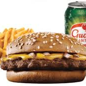 1 burguer junior bacon + batata (P) + refrigerante lata .