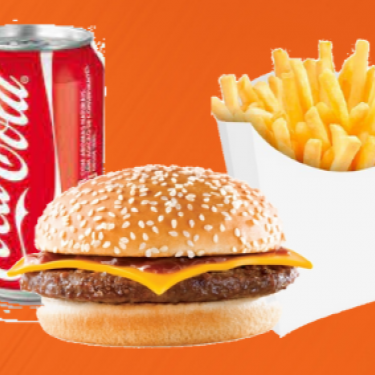 pão gourmet , hamburguer , cheddar cheese . + batata (P) + coca cola lata.