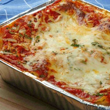 Lasanha Mussarela e Presunto . Molho vermelho , Mussarela . Feita na hora , com ingredientes do Dia. Tempo no forno : 40 minutos, 750 ml