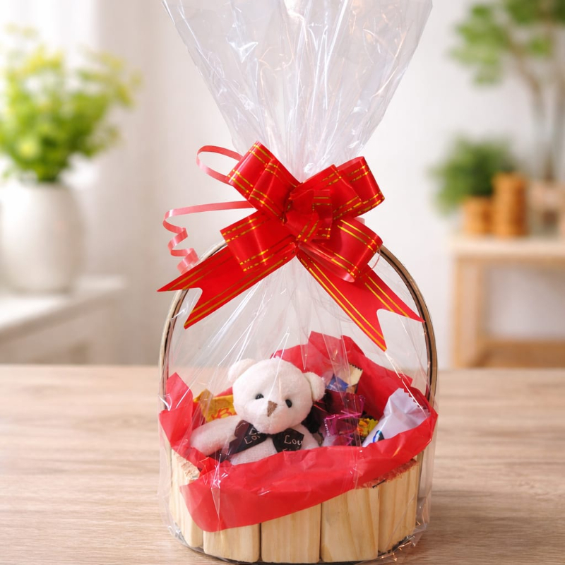 🎁 Cestinha Presente Ursinho + Chocolates Lacta + Bolinho Bauducco (p)