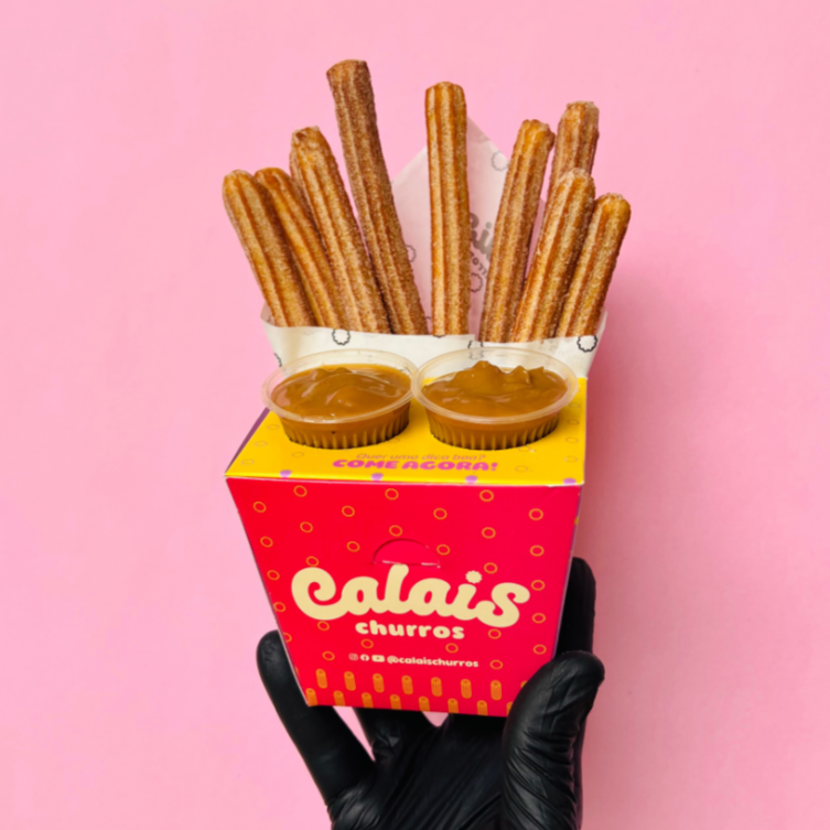 Combo 3 Churros Tradicionais' Seja com Doce de Leite, Nutella, Leite Ninho, Chocolate ao Leite, Chocolate Branco ou Goiabada. A massa é leve, crocante e sequinha, polvilhada no açúcar e canela.