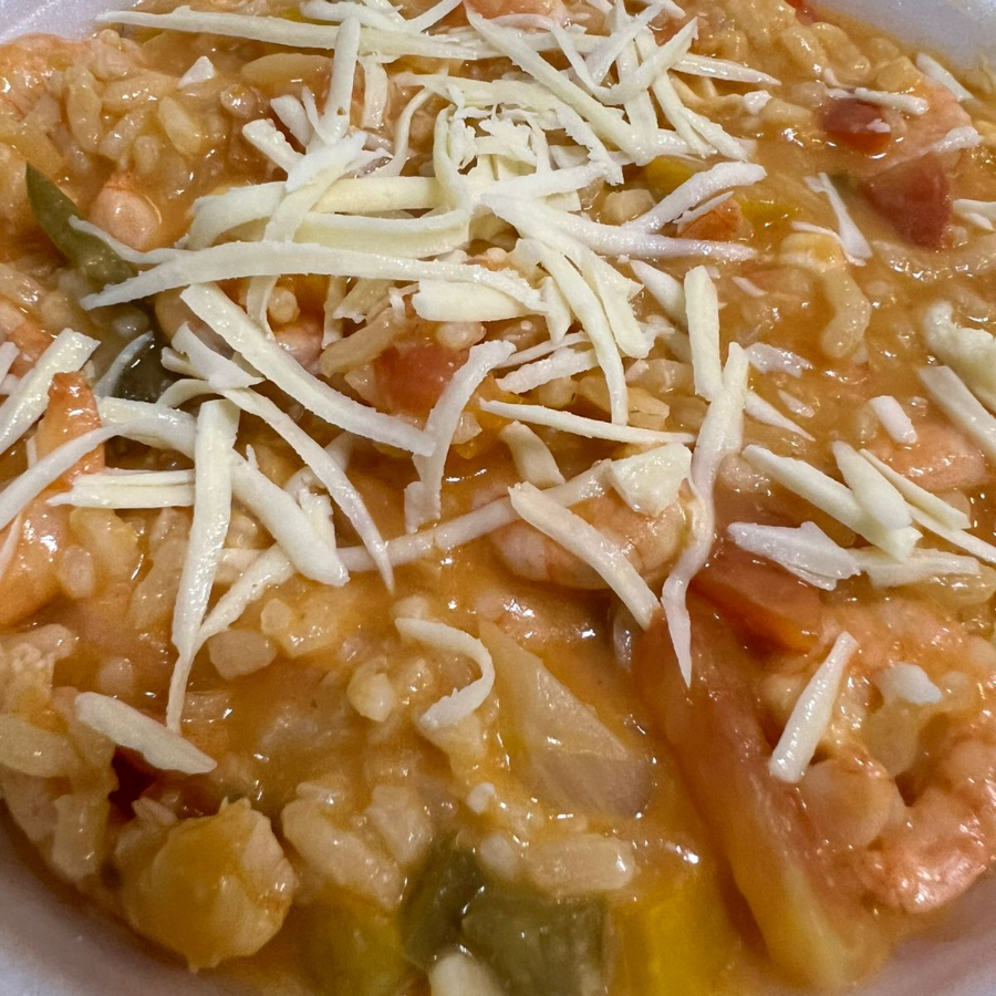 Camarão bem temperado 300gr , preparado com Arroz Arbório. Preparo 30-40 min