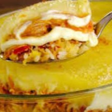 Peito De Frango Desfiado, Alho, Cebola, Ervas Finas, Requeijão, Purê De Batatas, Queijo Parmesão E Mussarela, Azeite E Azeitona