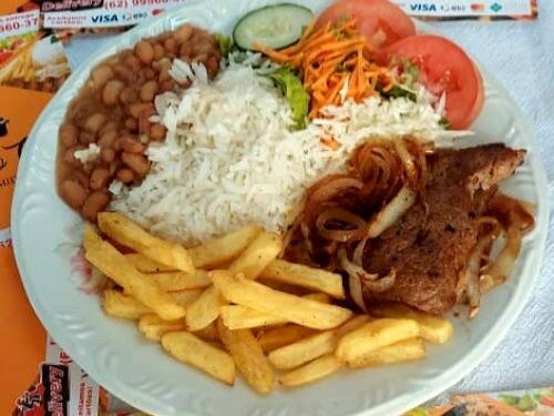 Bife de Contrafilé, arroz, feijão, salada