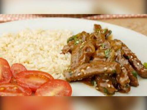 Filezinhos Bovino, arroz, feijão, salada