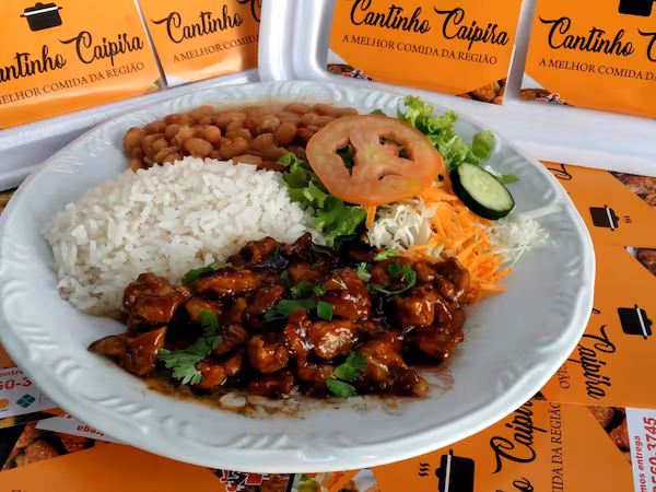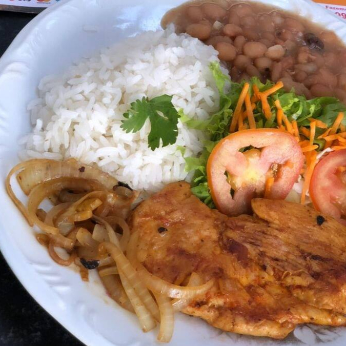 Frango, arroz, feijão, salada