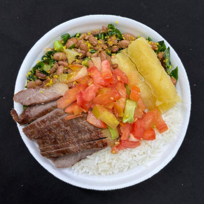 Carne de Sol, Mandioca, Arroz, Feijão Tropeiro, Tomate.
