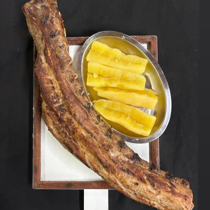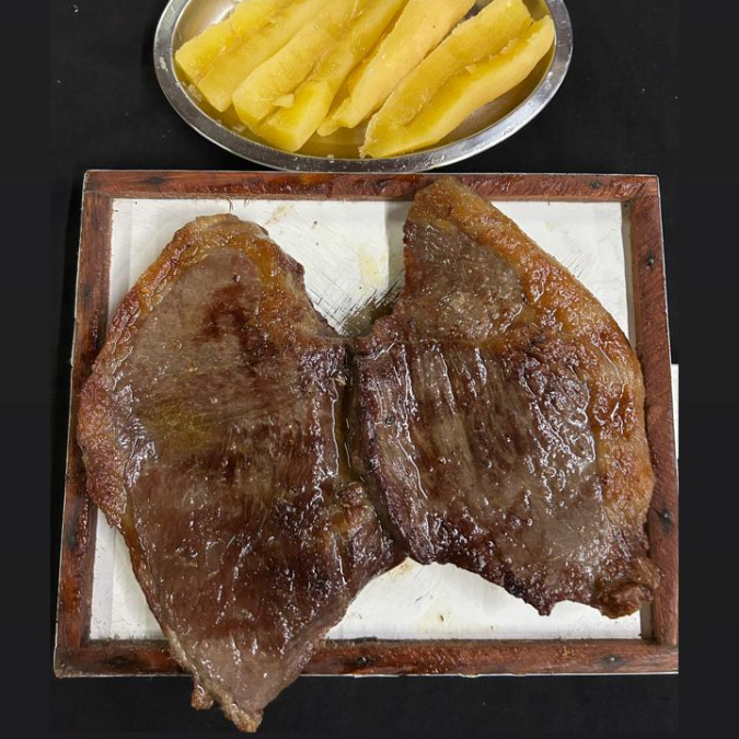 Carne de Sol de corte nobre ANGUS, assado na brasa com deliciosa manteiga do sertão, acompanhada de uma generosa porção de mandioca
