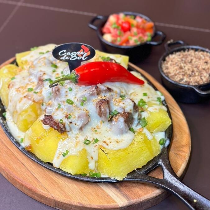 500g de Picanha na Chapa, acompanhada com queijo, mandioca, Palmito