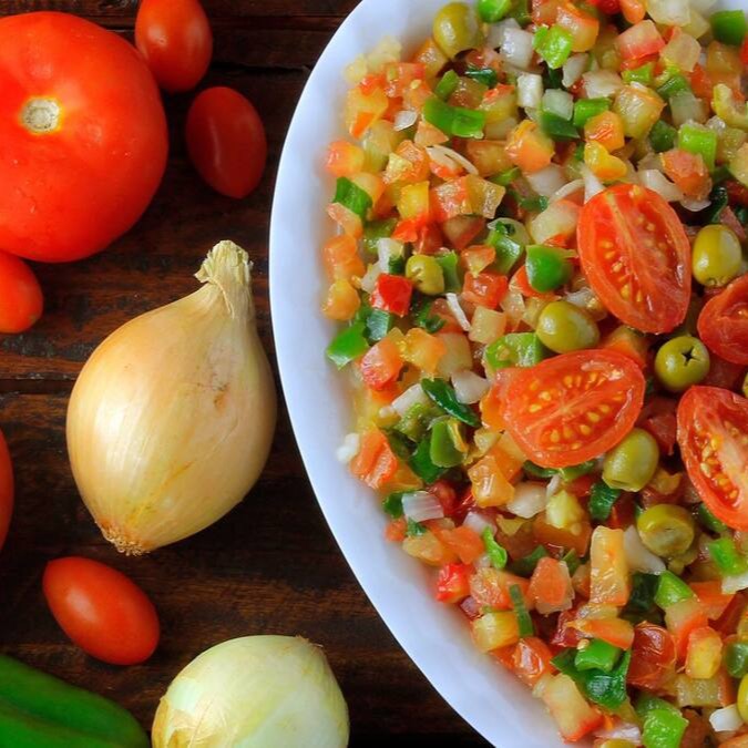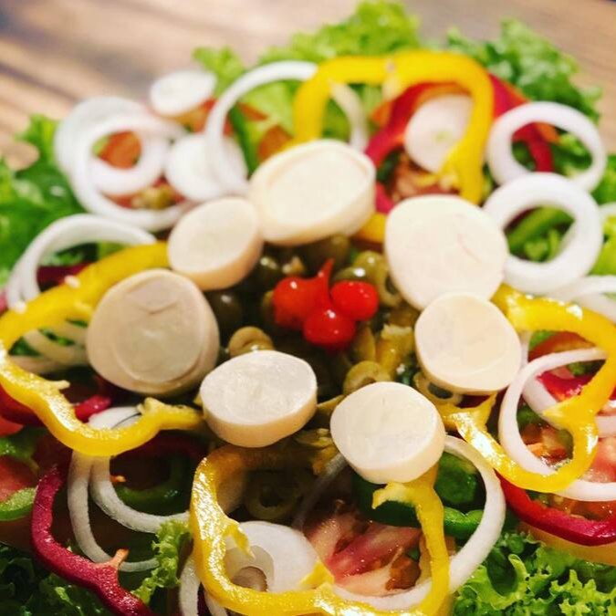Alface, Tomate, Azeitona, Palmito, Cebola e Pimentão