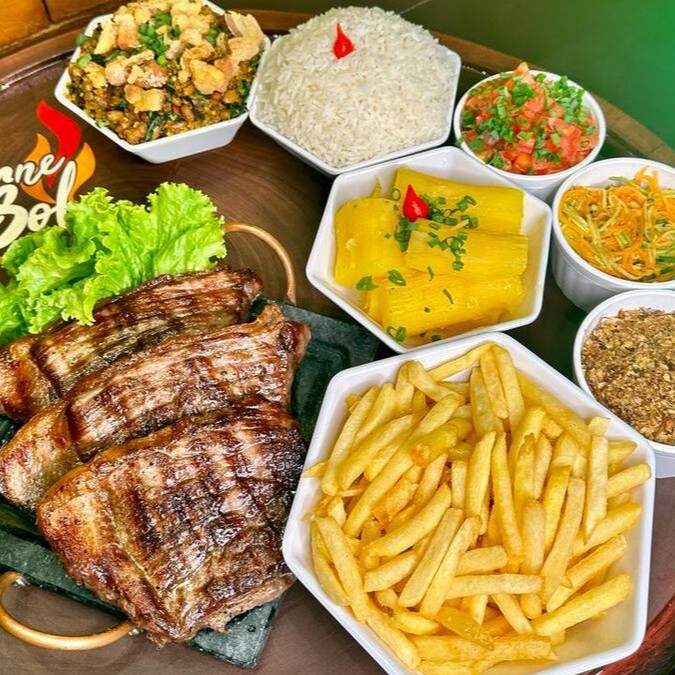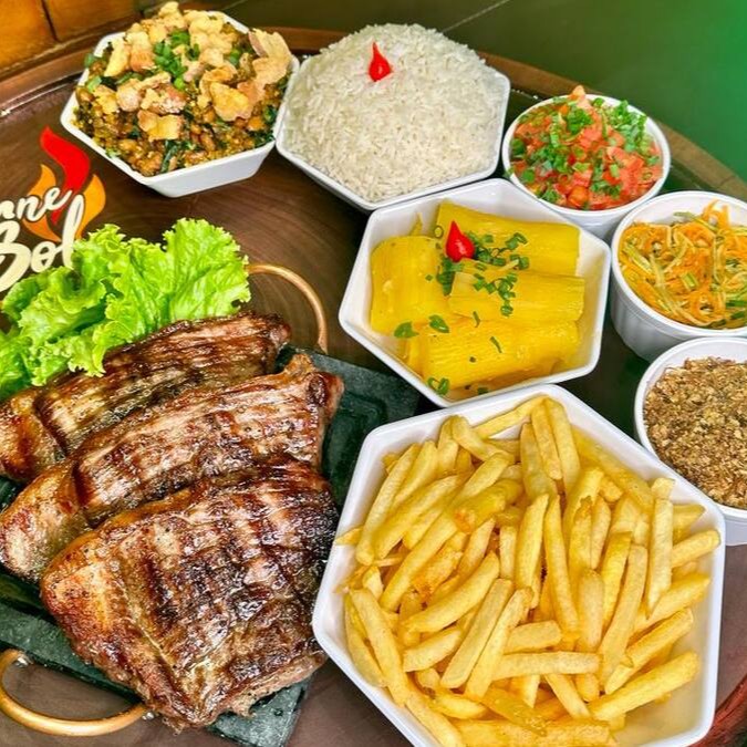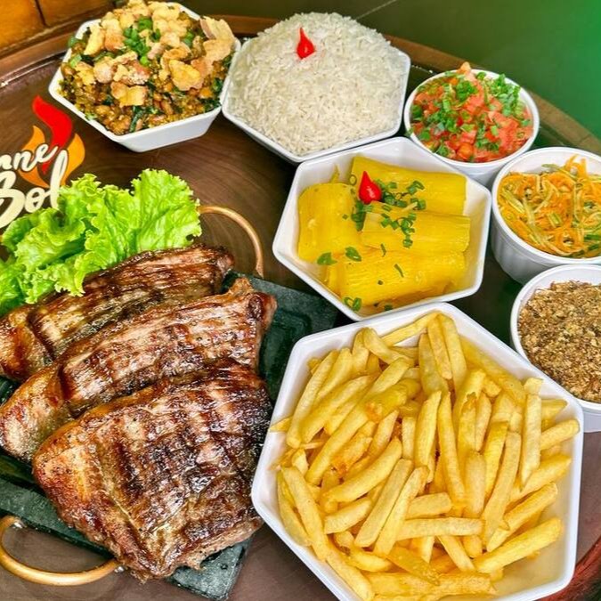 Acompanhada de Arroz, 500gr de Cupim Grill, Feijão Tropeiro, Mandioca, Vinagrete, Paçoca, Batata Frita e uma salada da casa.