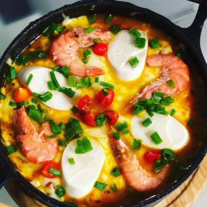 Deliciosa panelinha composta por arroz, camarões frescos selecionados, creme de leite, milho, ervilha, palmito e queijo.