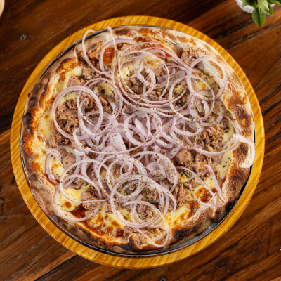Atum em Lascas com Muçarela Derretida, Cebola Suave e Molho Artesanal. Uma Combinação Clássica e Saborosa Que Nunca Sai de Moda!