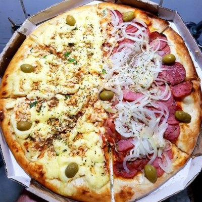 Pizza Meio A Meio Calabresa E Brasileira - Grande 8 Fatias
