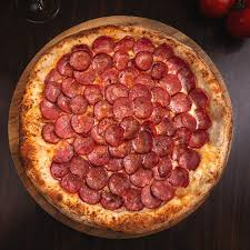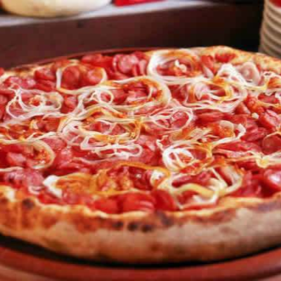 Pizza saborosa com calabresa, cebola fatiada, queijo mussarela e um toque de orégano.