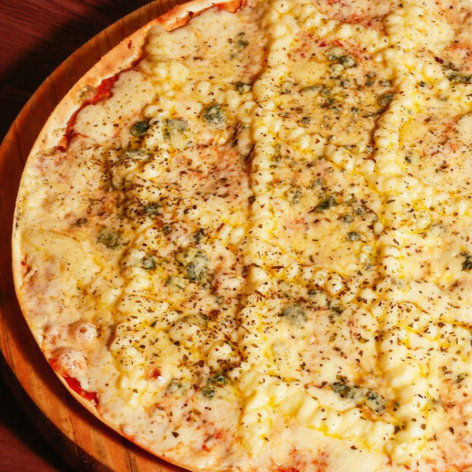 Molho, mussarela, catupiry, cheddar, ricota e orégano