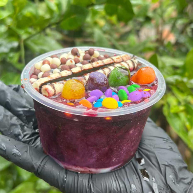 Delicioso Açaí de 500ml Acompanhado de Chocolate Cremoso, Choco Ball , M&M , Leite Ninho , Paçoca e Leite Condesado